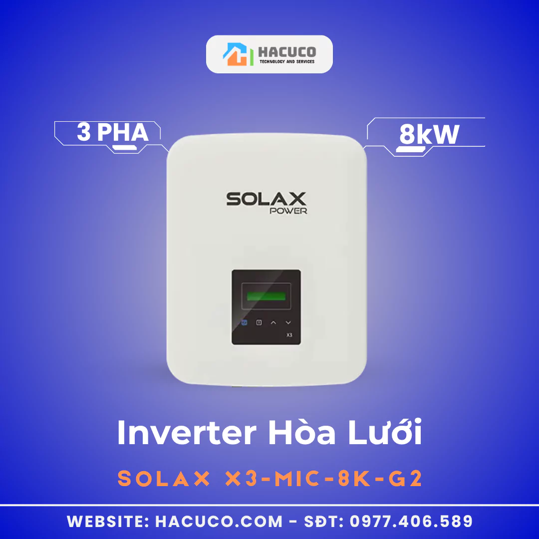 Inverter Hòa Lưới Solax 8kW 3 Pha mã X3-MIC-8K-G2 là một giải pháp mạnh mẽ và thông minh dành cho các hệ thống điện mặt trời dân dụng và thương mại nhỏ.